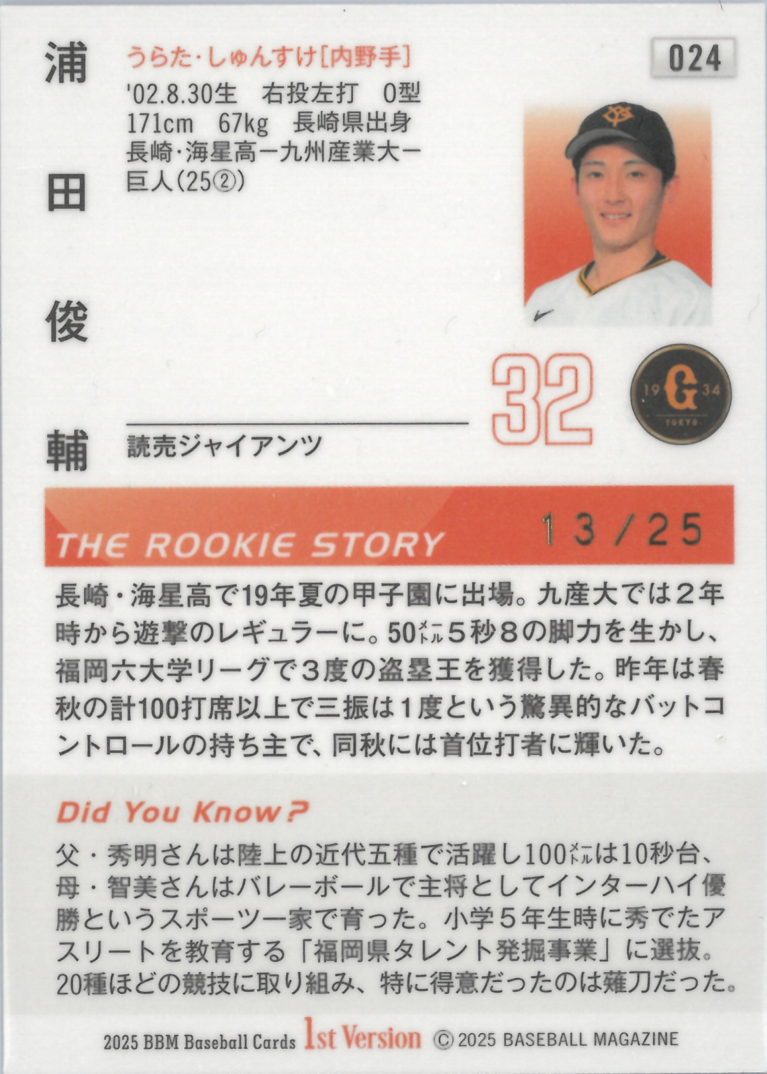 2025 BBM "Shunsuke Urata" 【13/25】#024