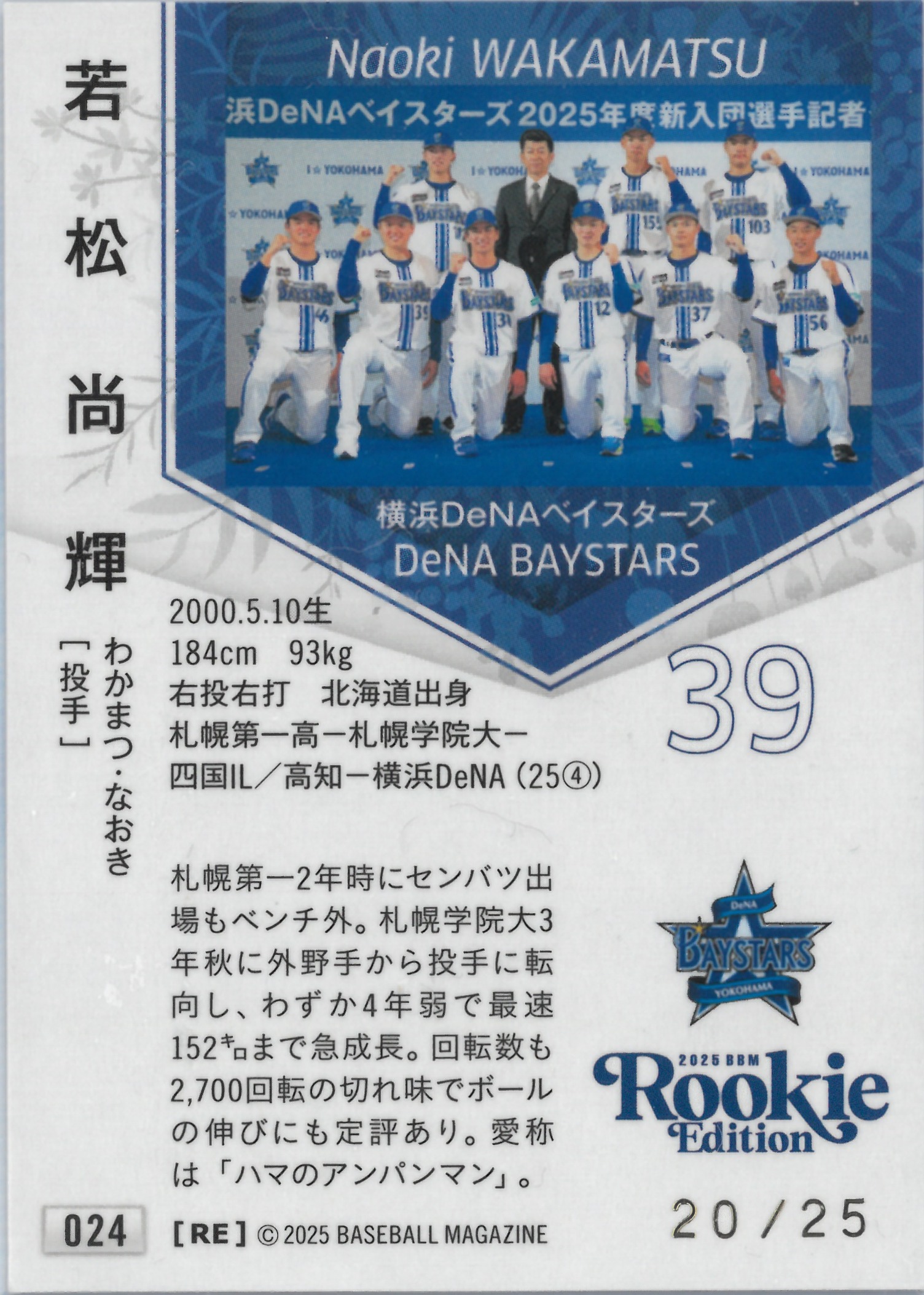 2025 BBM "Naoki Wakamatsu" 【20/25】#024