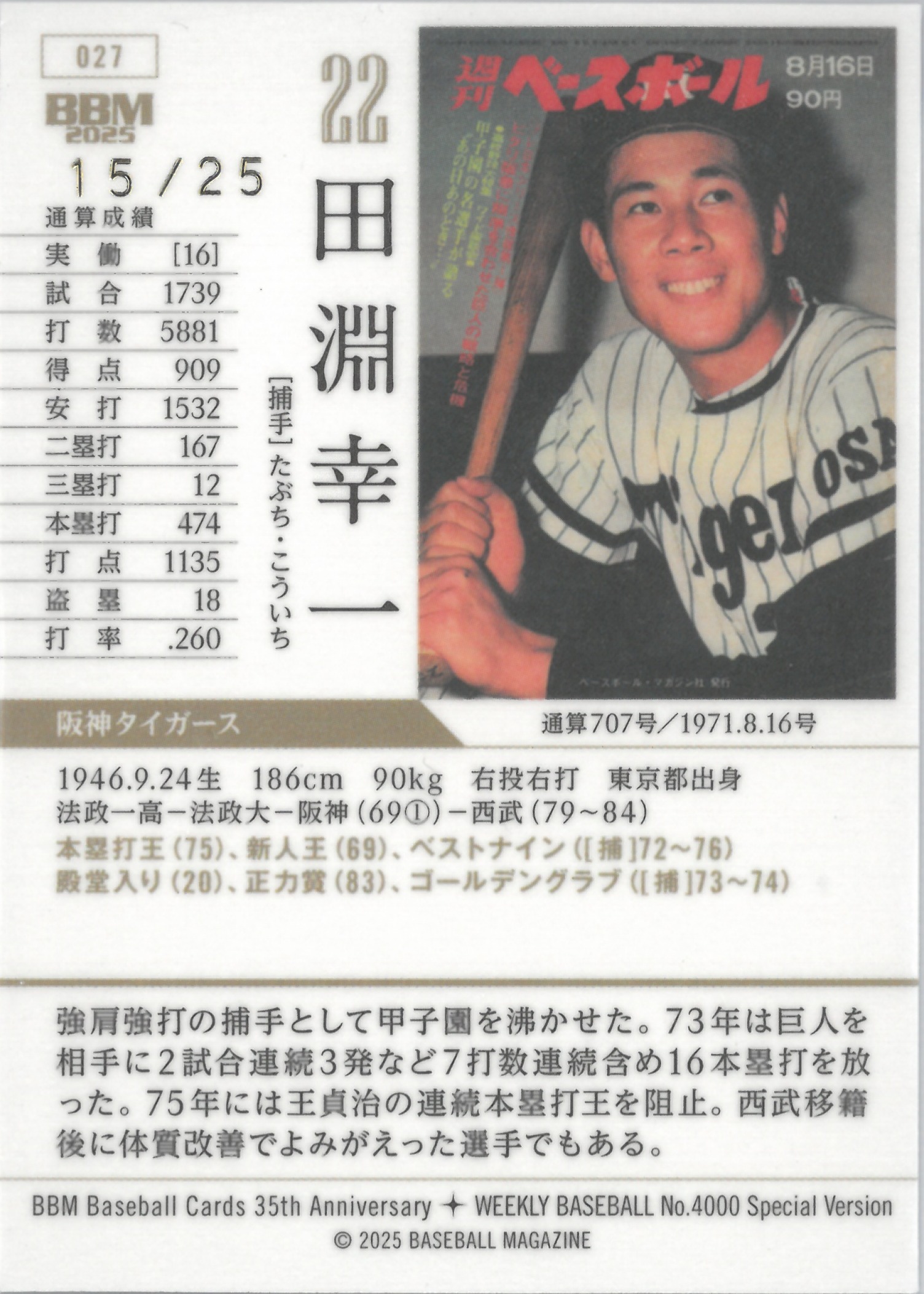 2025 BBM "Koichi Tabuchi" 【15/25】#027